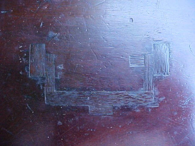 Original period English box w/original green baize interior. The center brass carrying handle in the top of the lid was removed long ago and replaced with wood during the period of use.